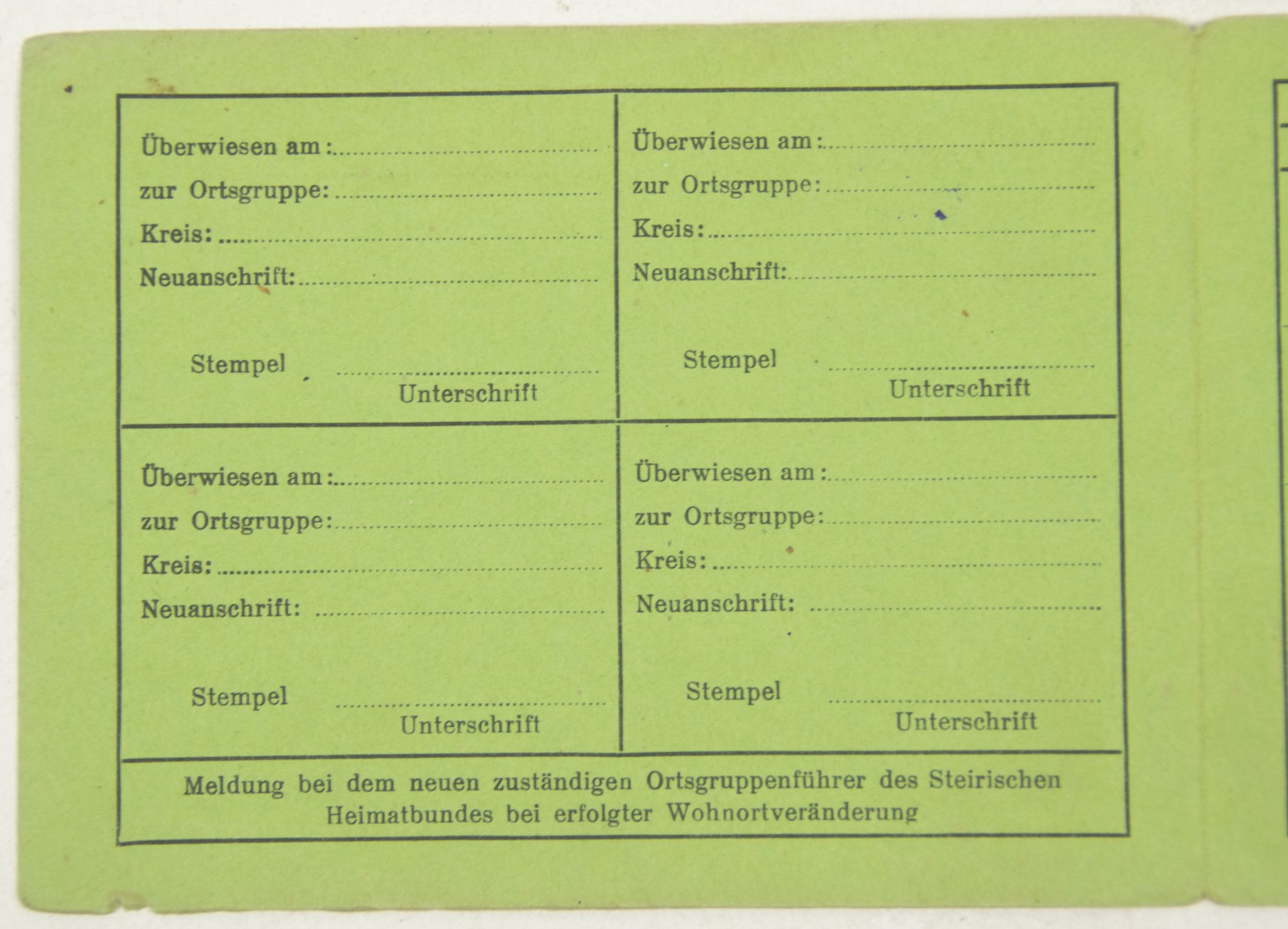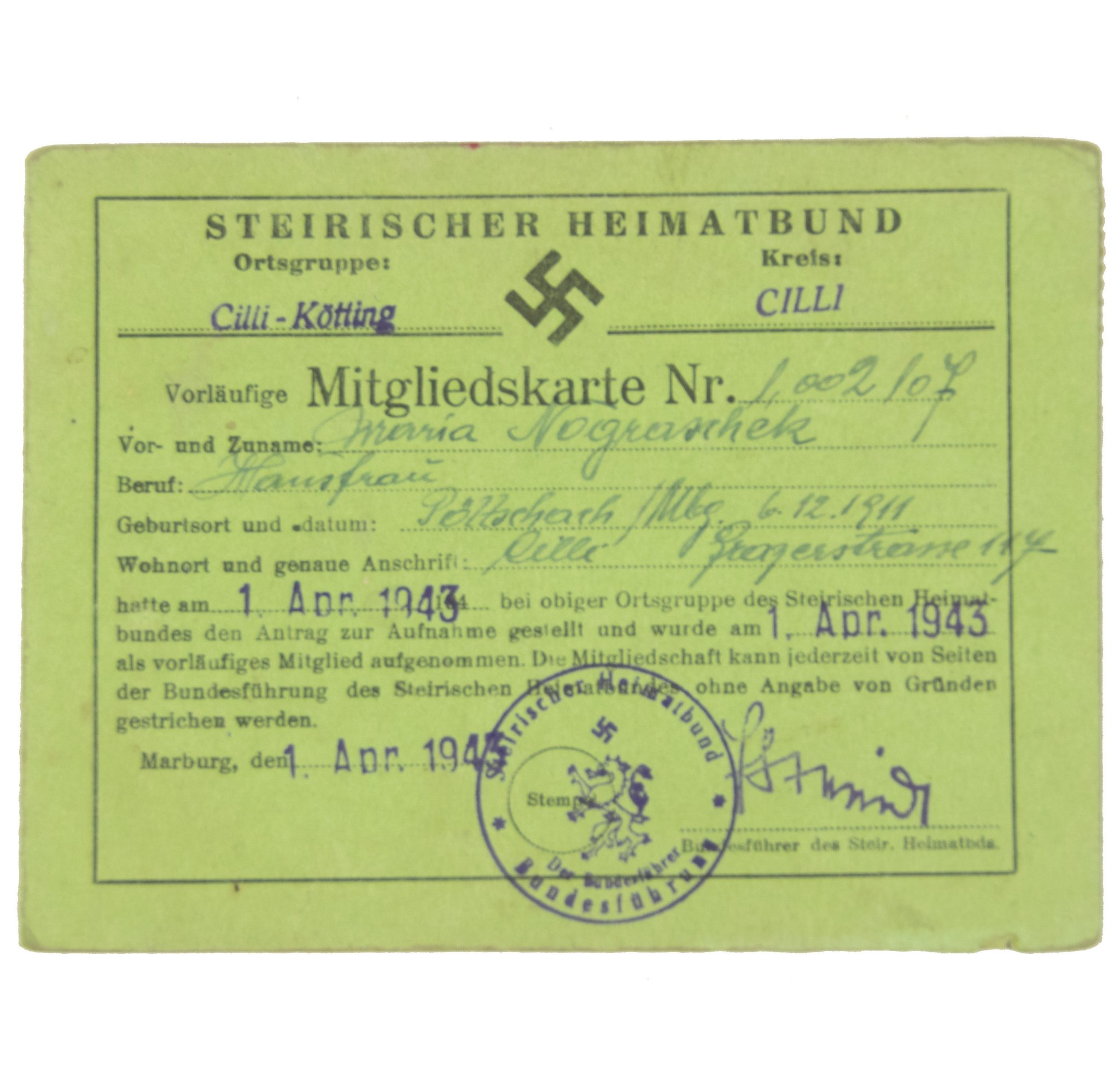 Steirischer Heimatbund Mitgliedskarte (1943).