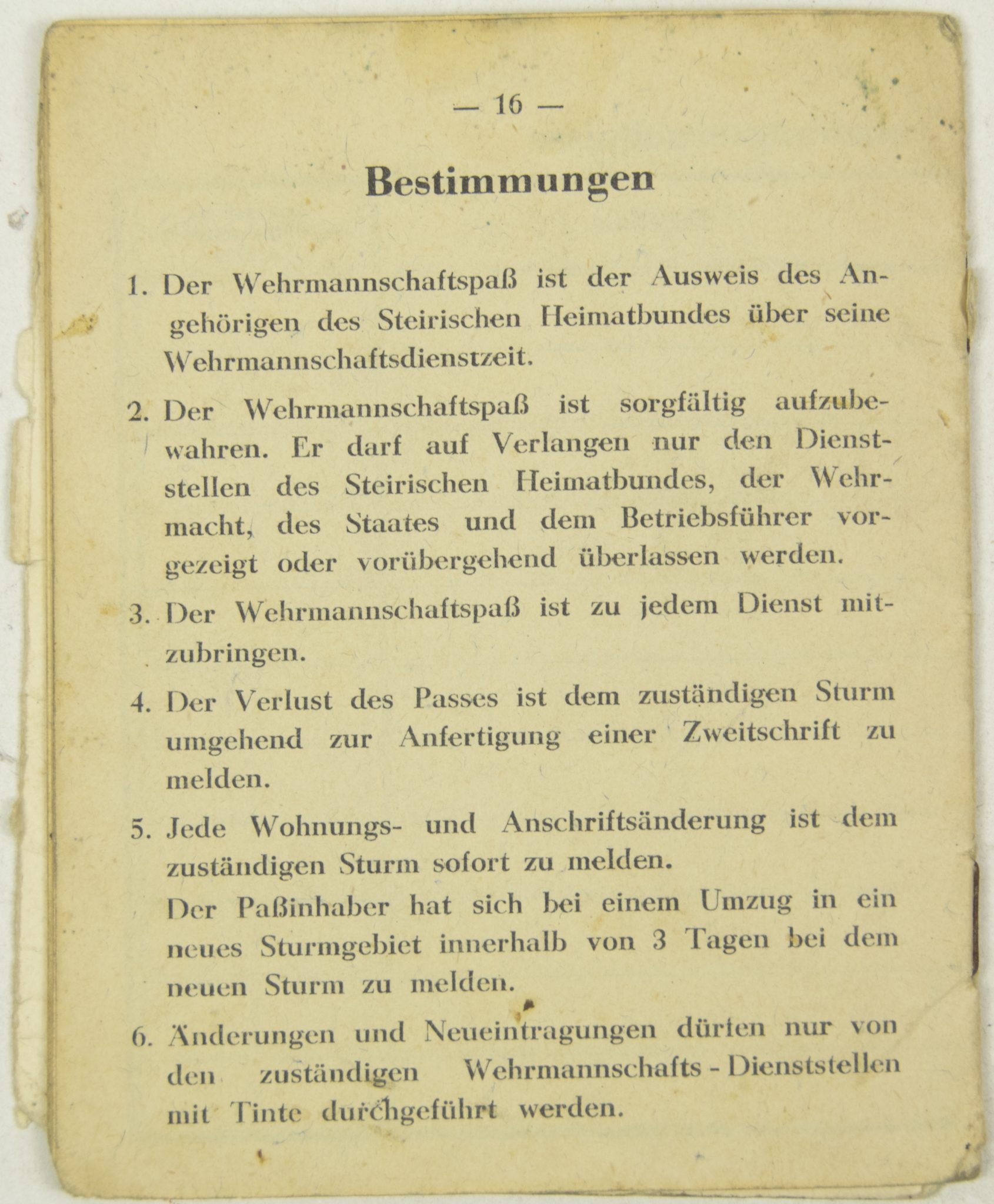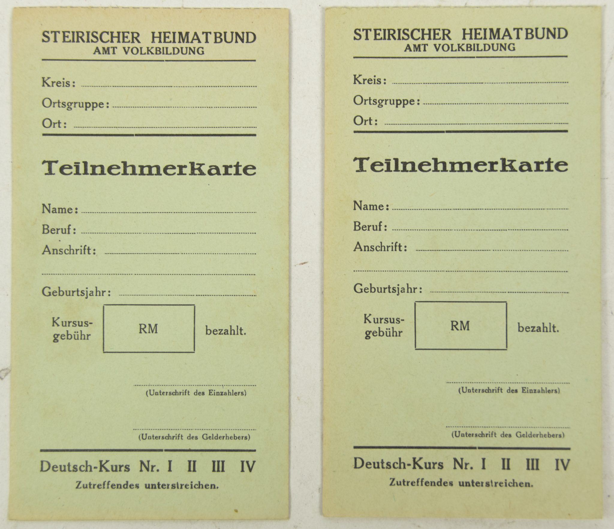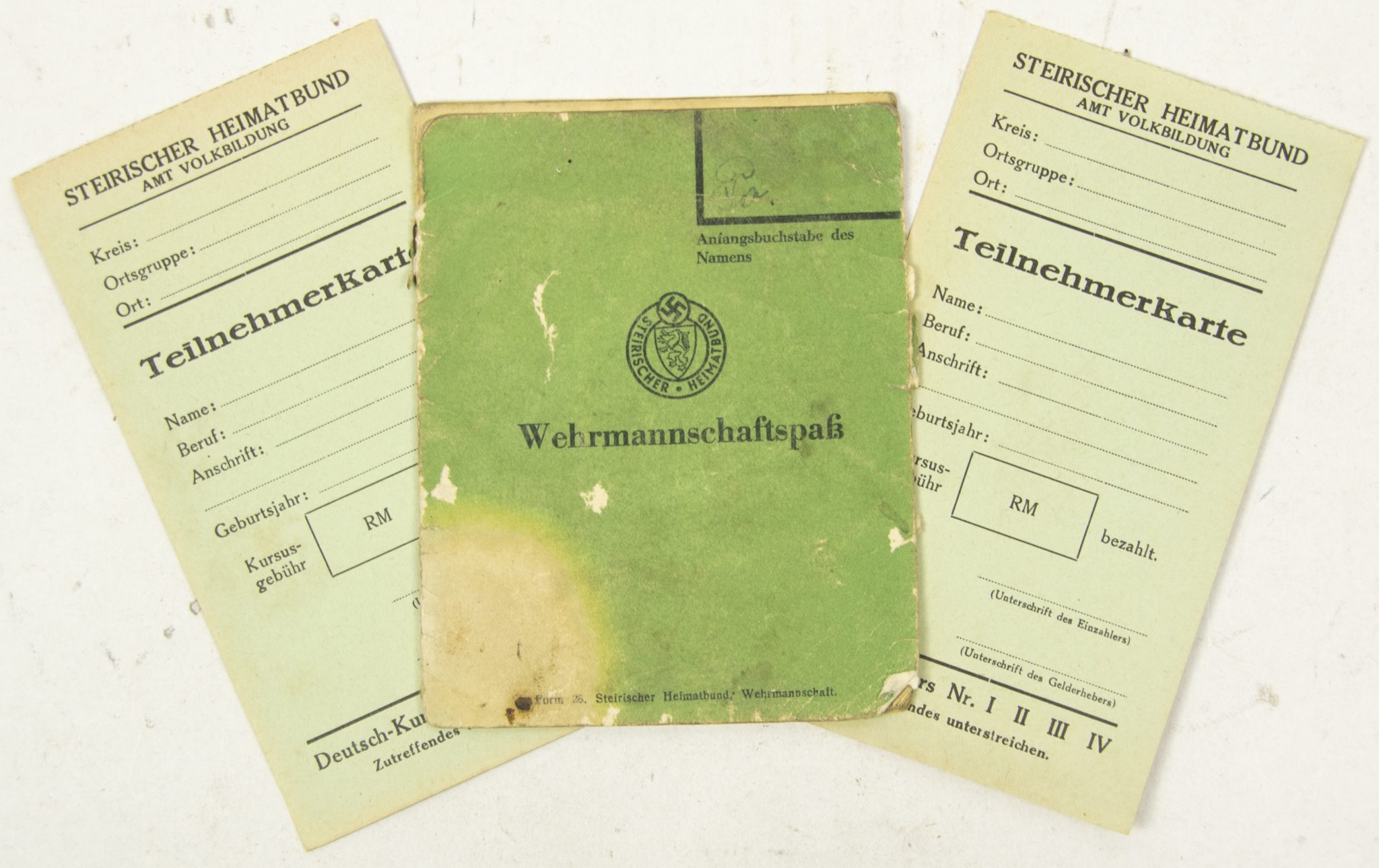 Steirischer Heimatbund Wehrmannschaftspass + 2 Teilnehmerkarten.