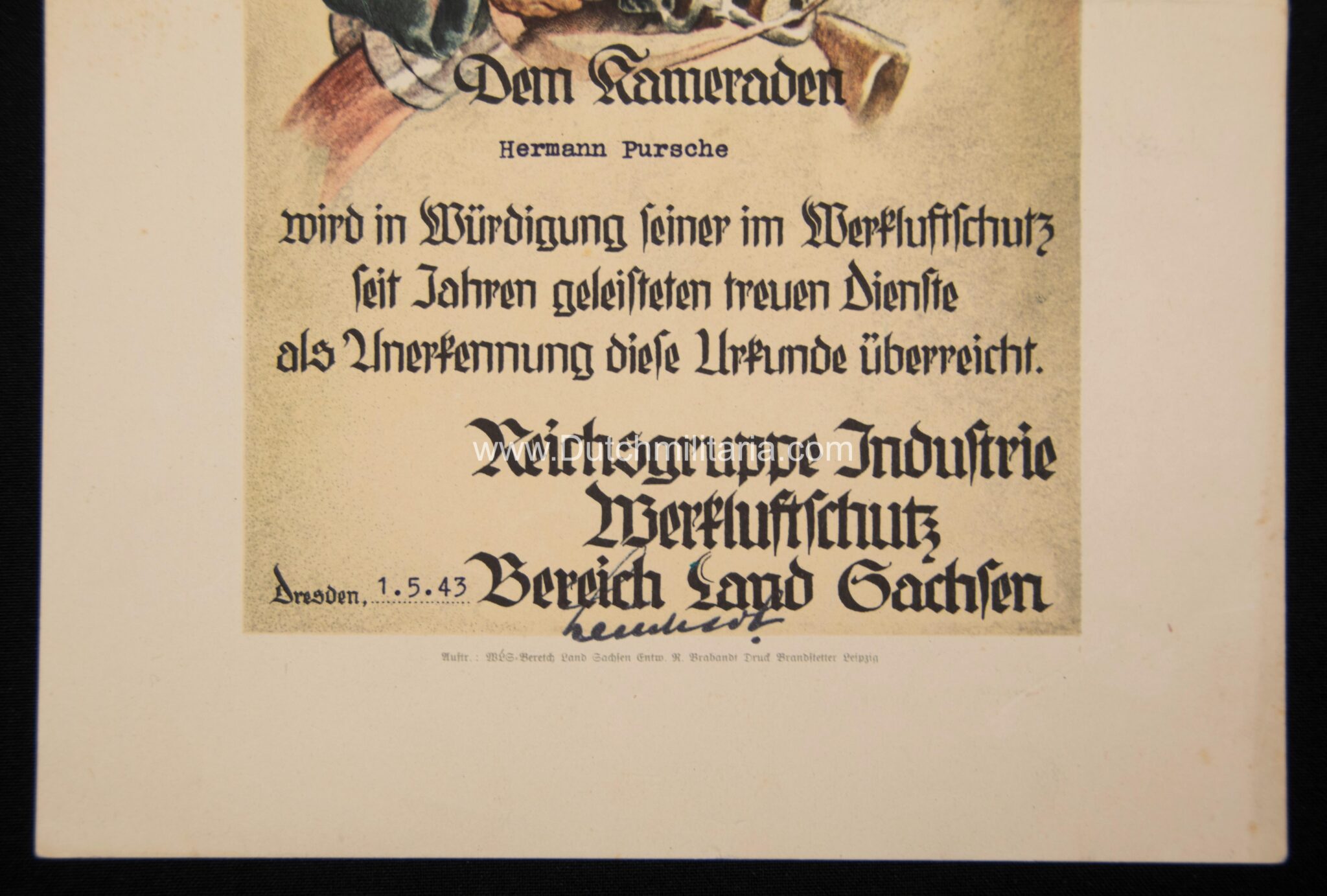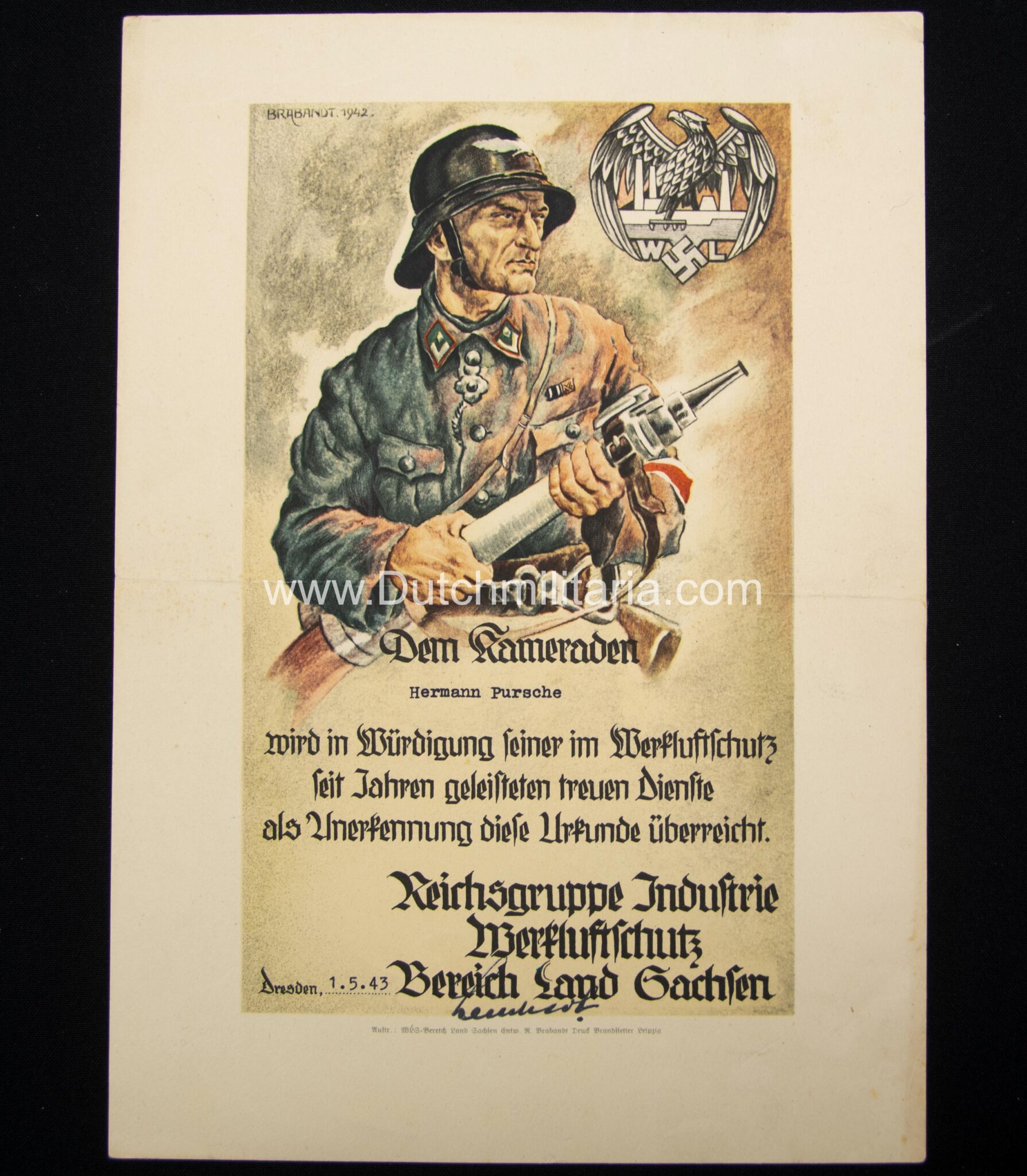 (Urkunde) Luxuary citation Werkluftschutz (1943).