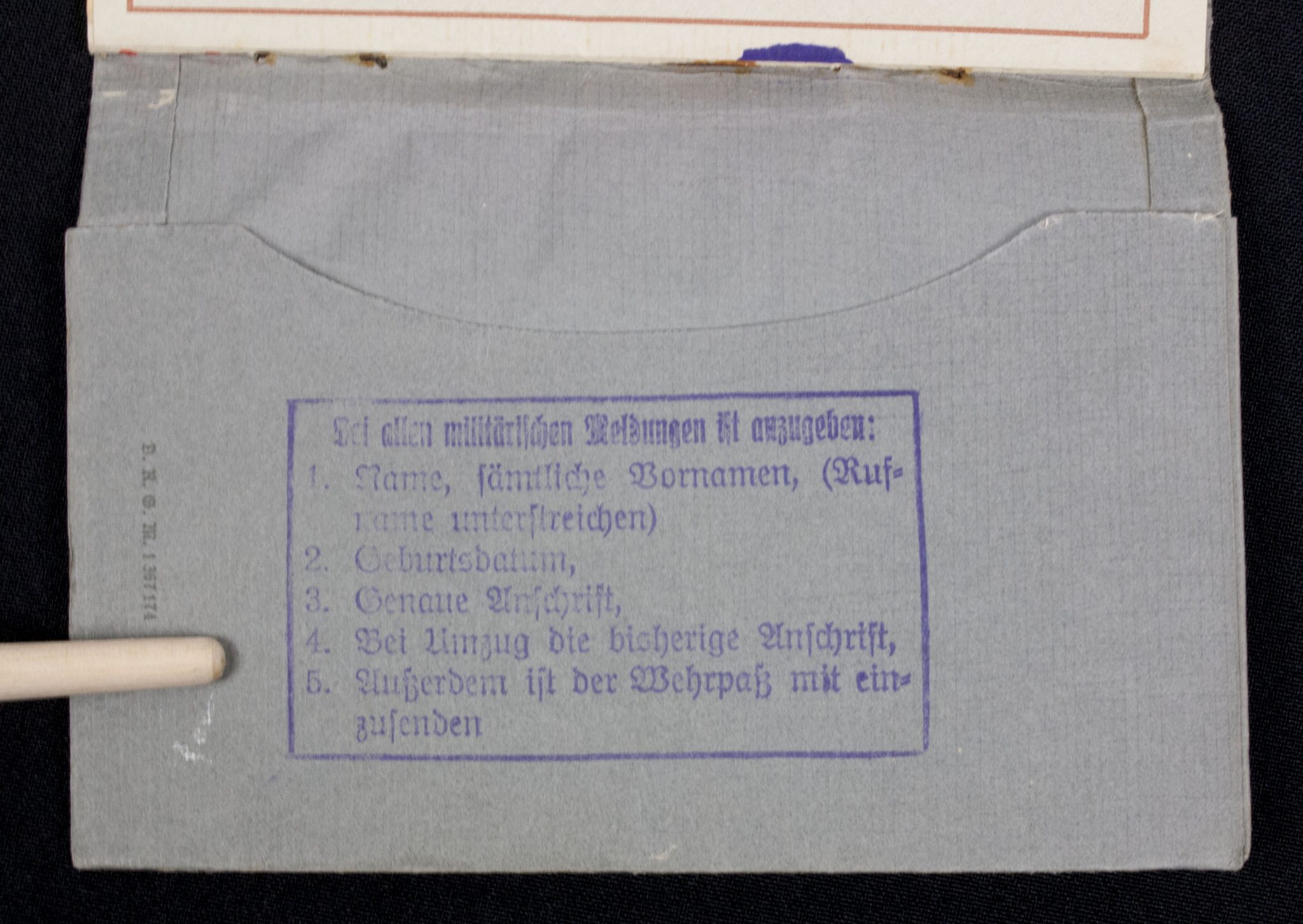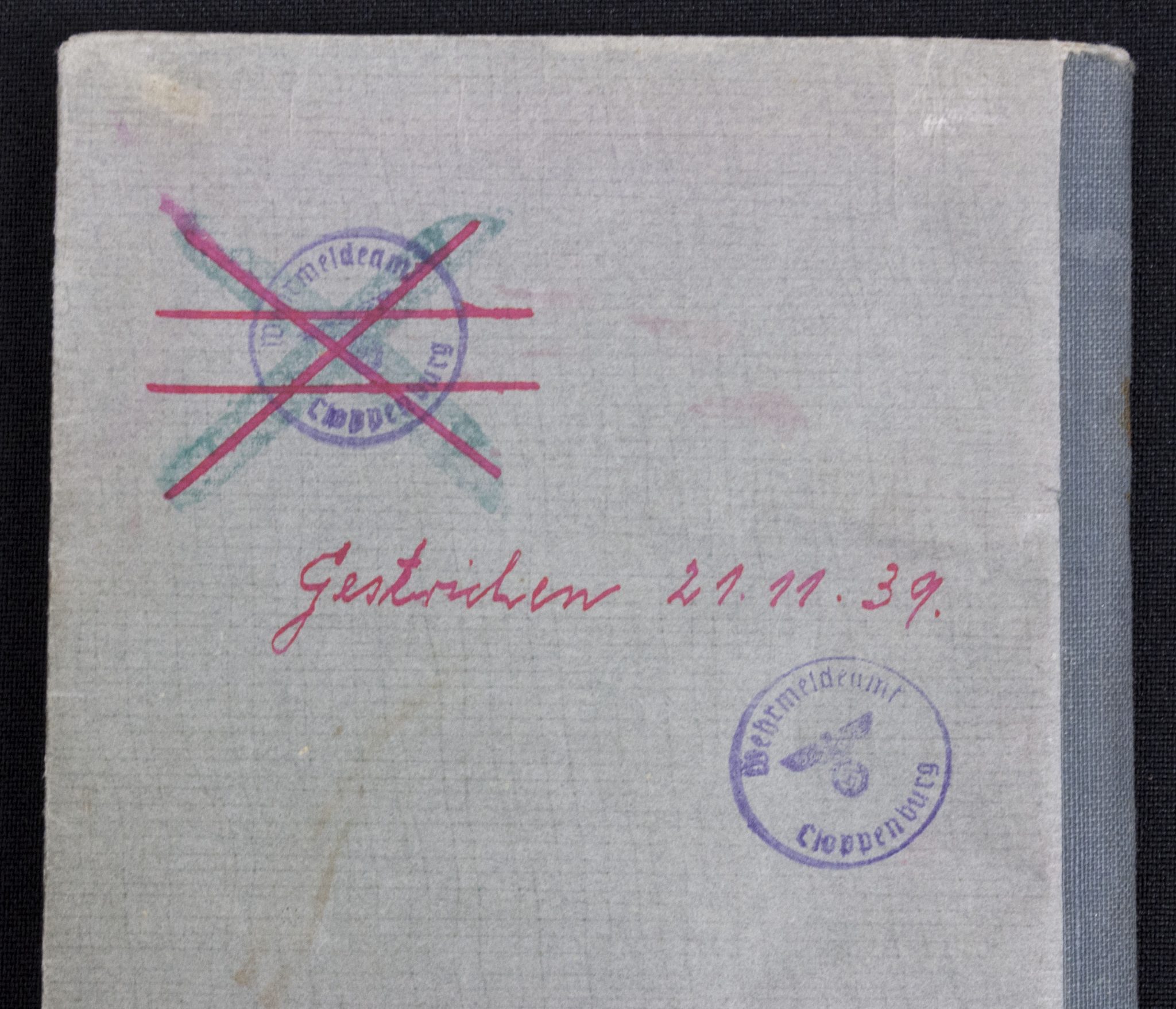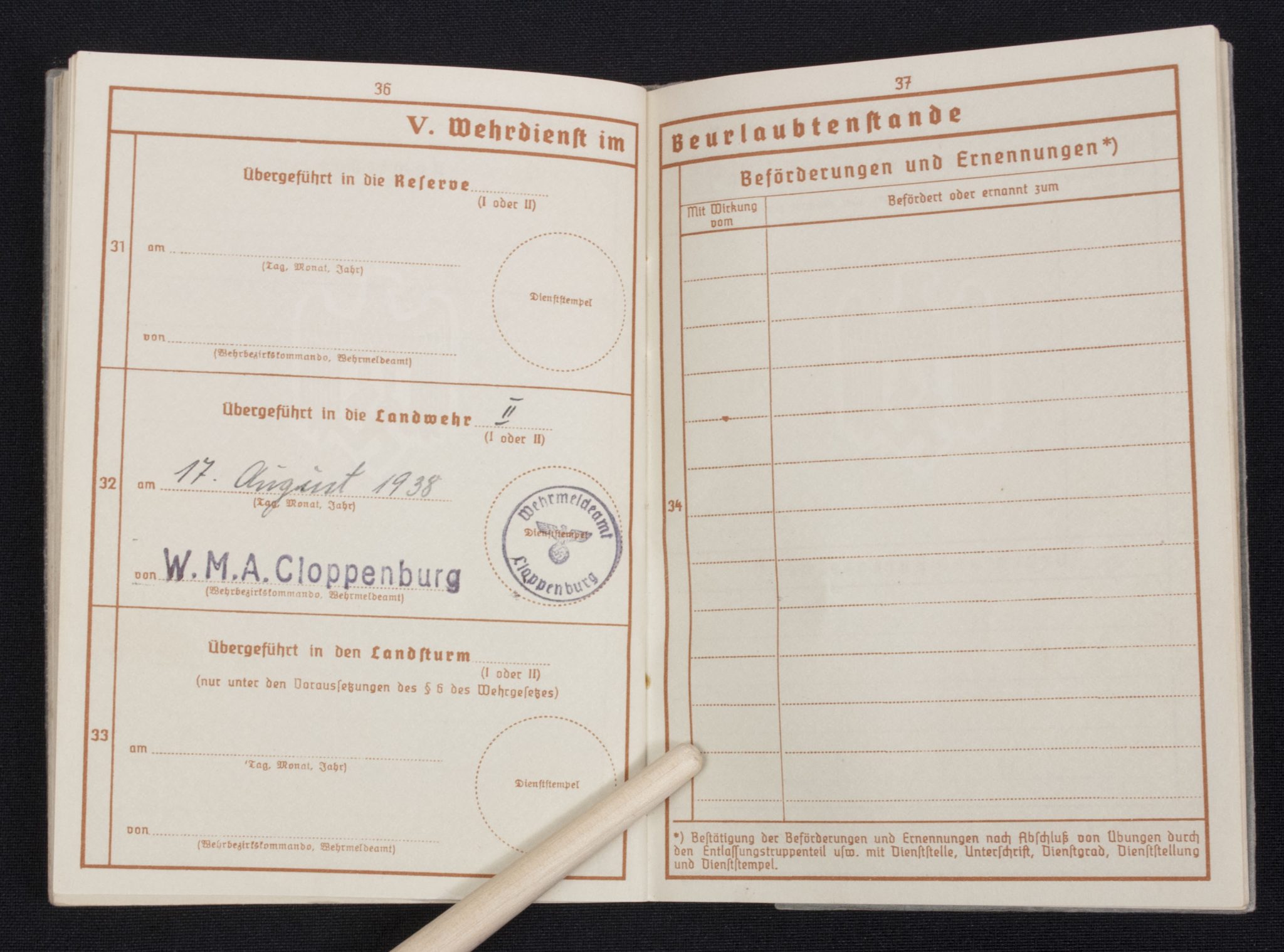 Wehrpass first type – Wehrbezirkskommando Oldenburg.
