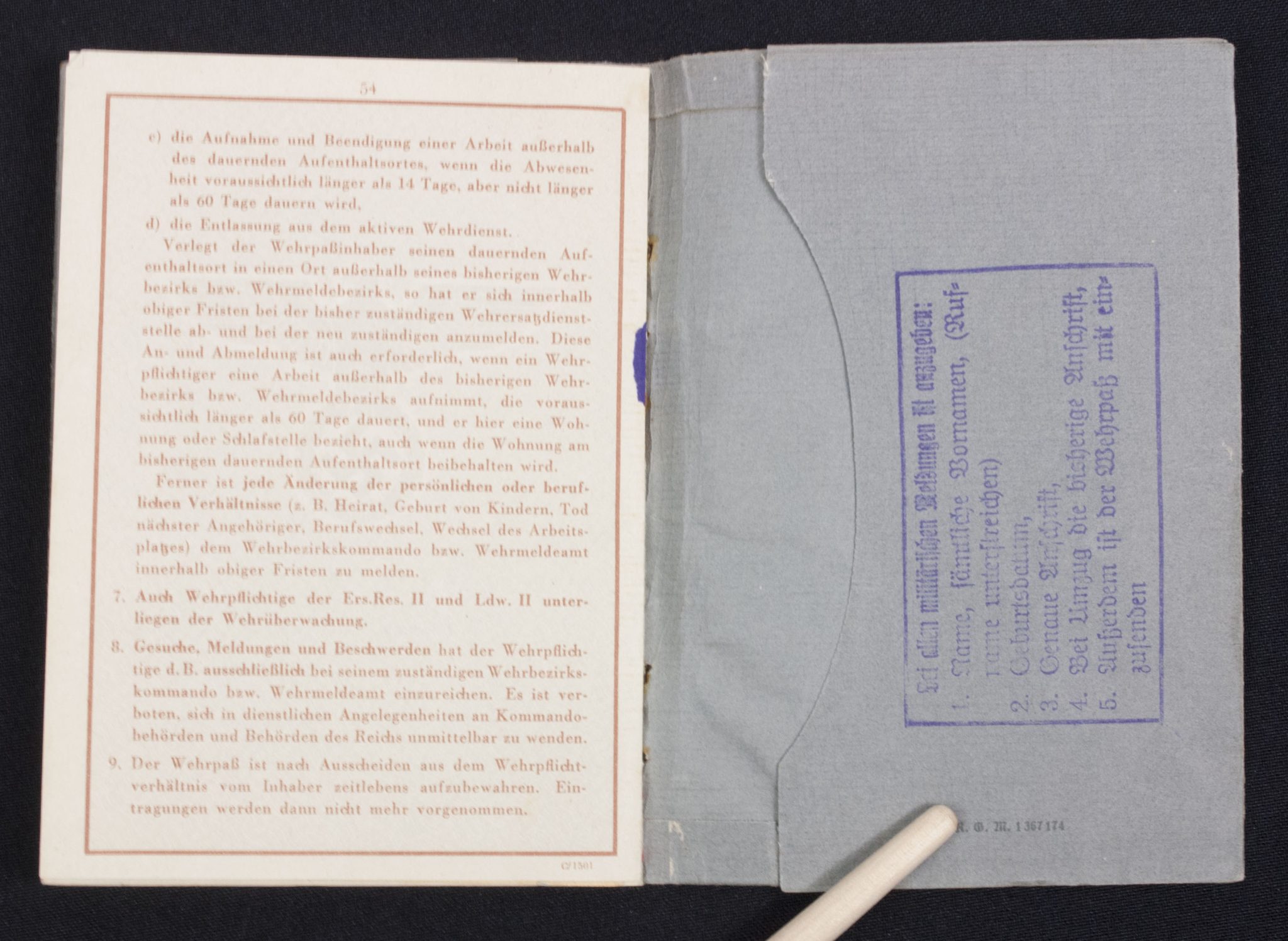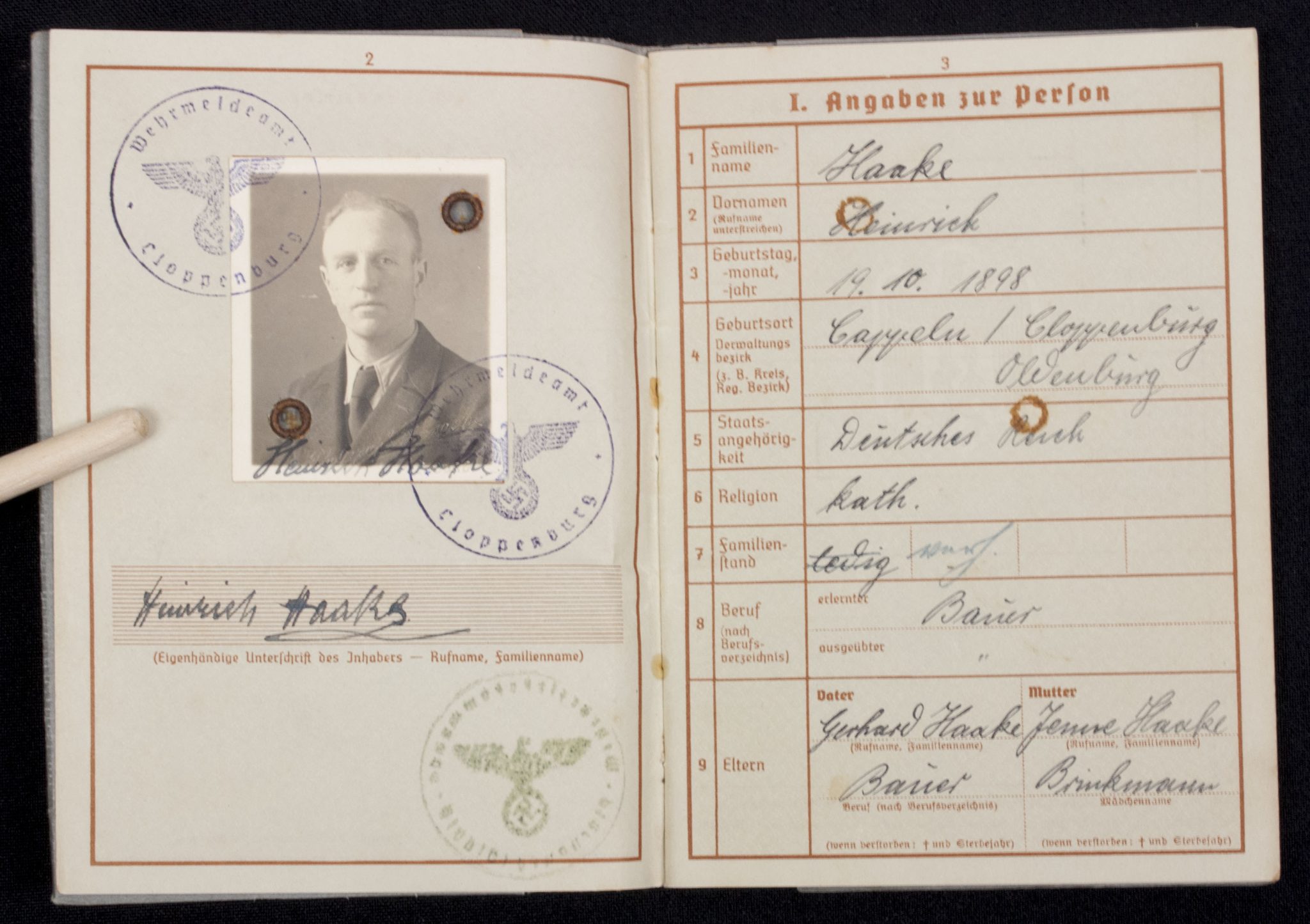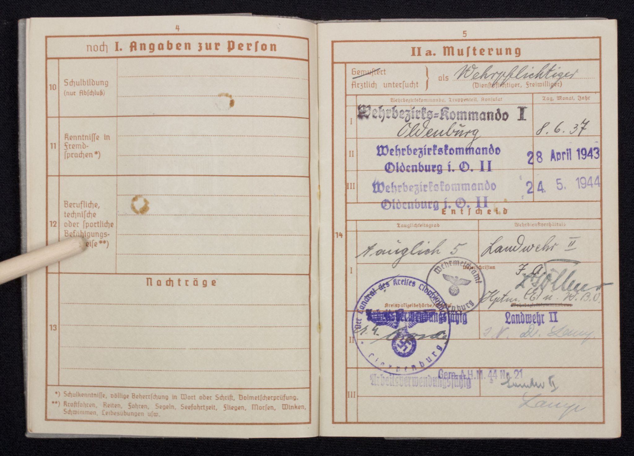 Wehrpass first type – Wehrbezirkskommando Oldenburg.