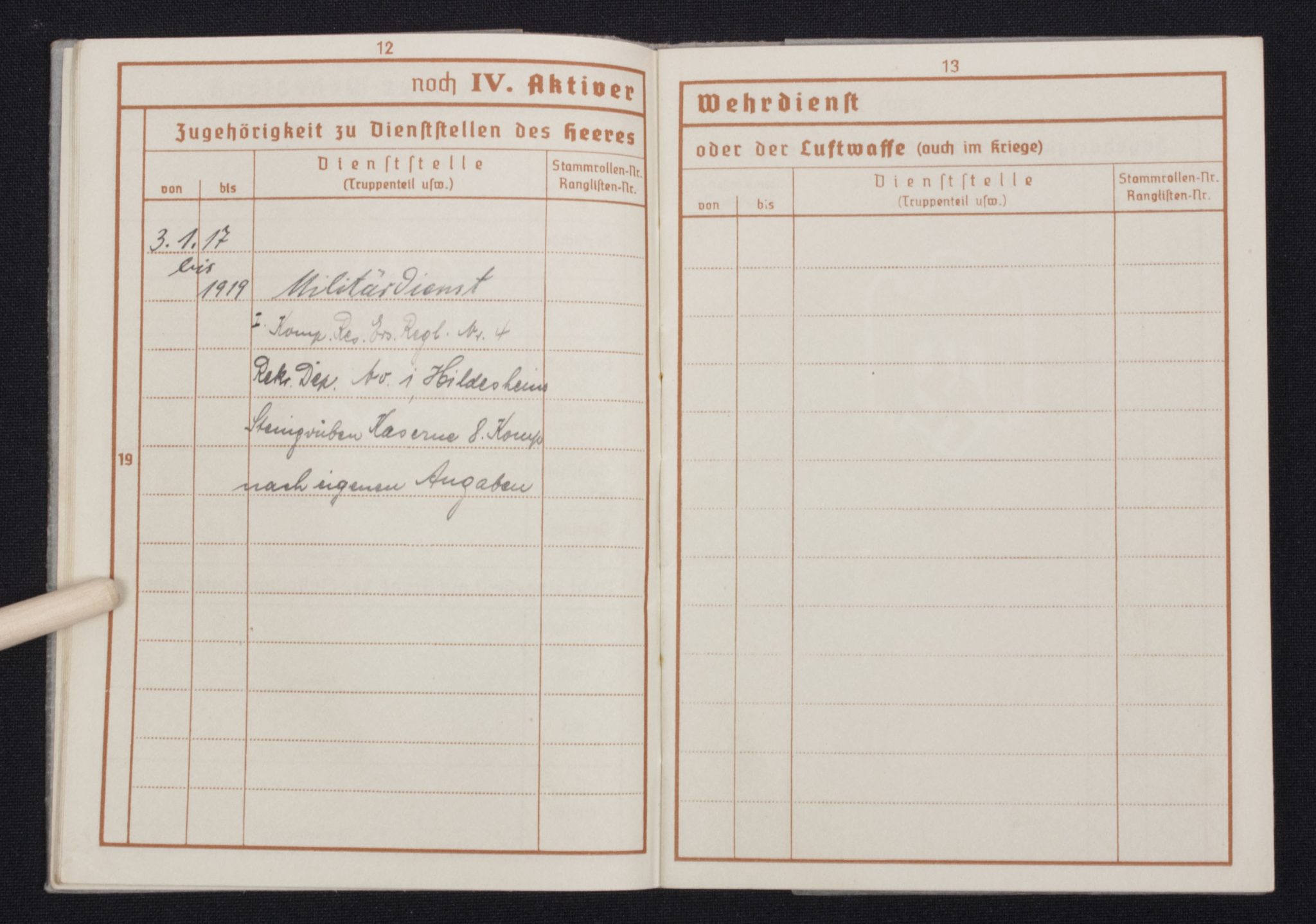 Typicall World Wat I veteran. Not many entries, still a nice original first type Wehrpass.