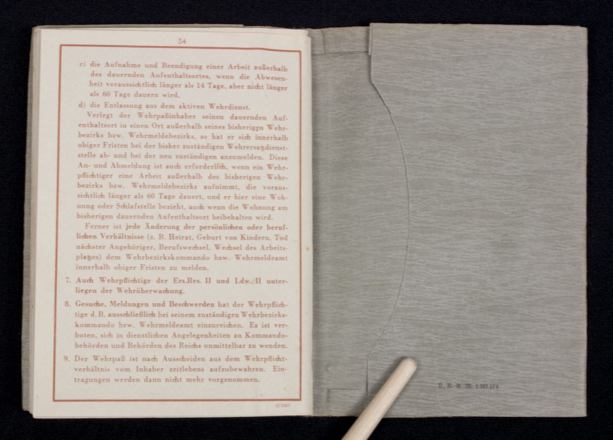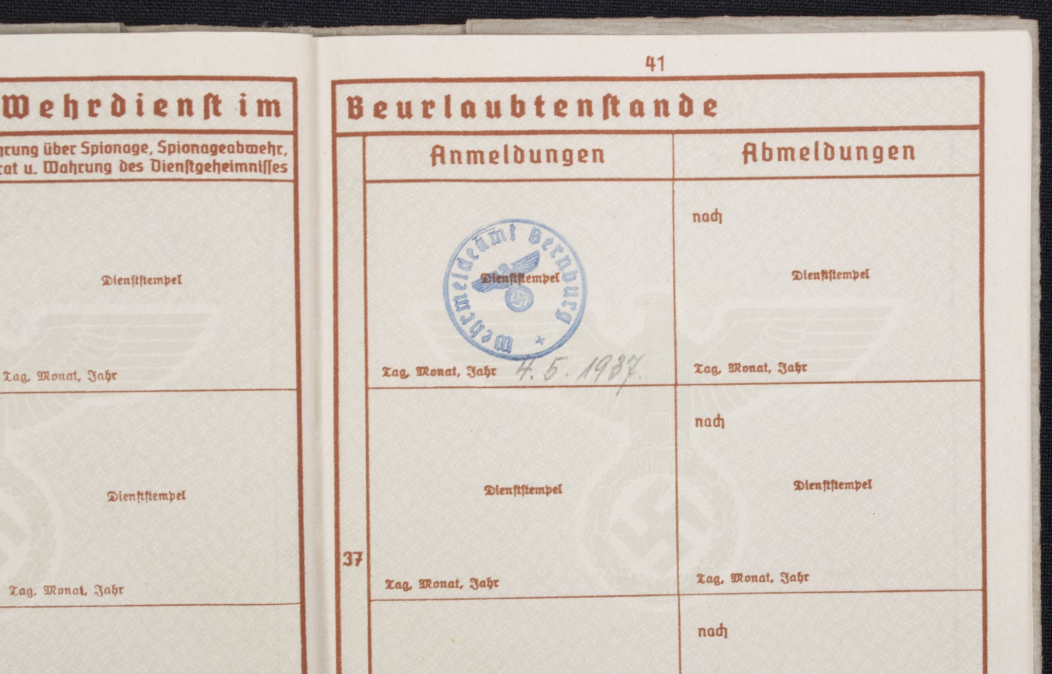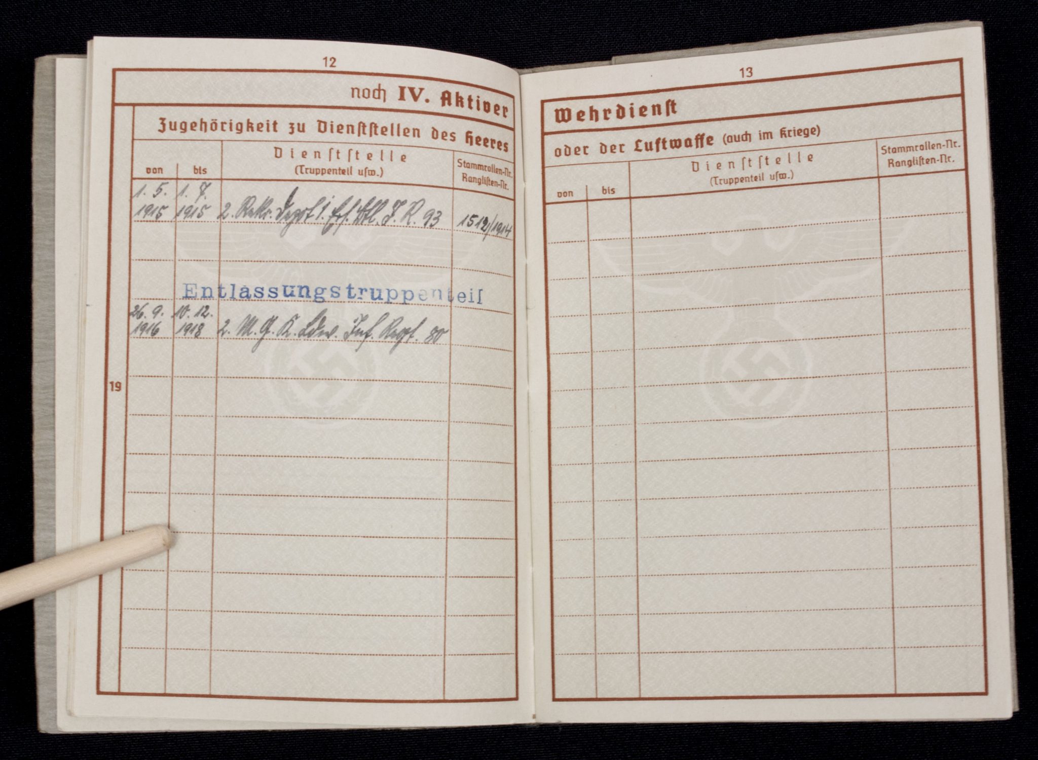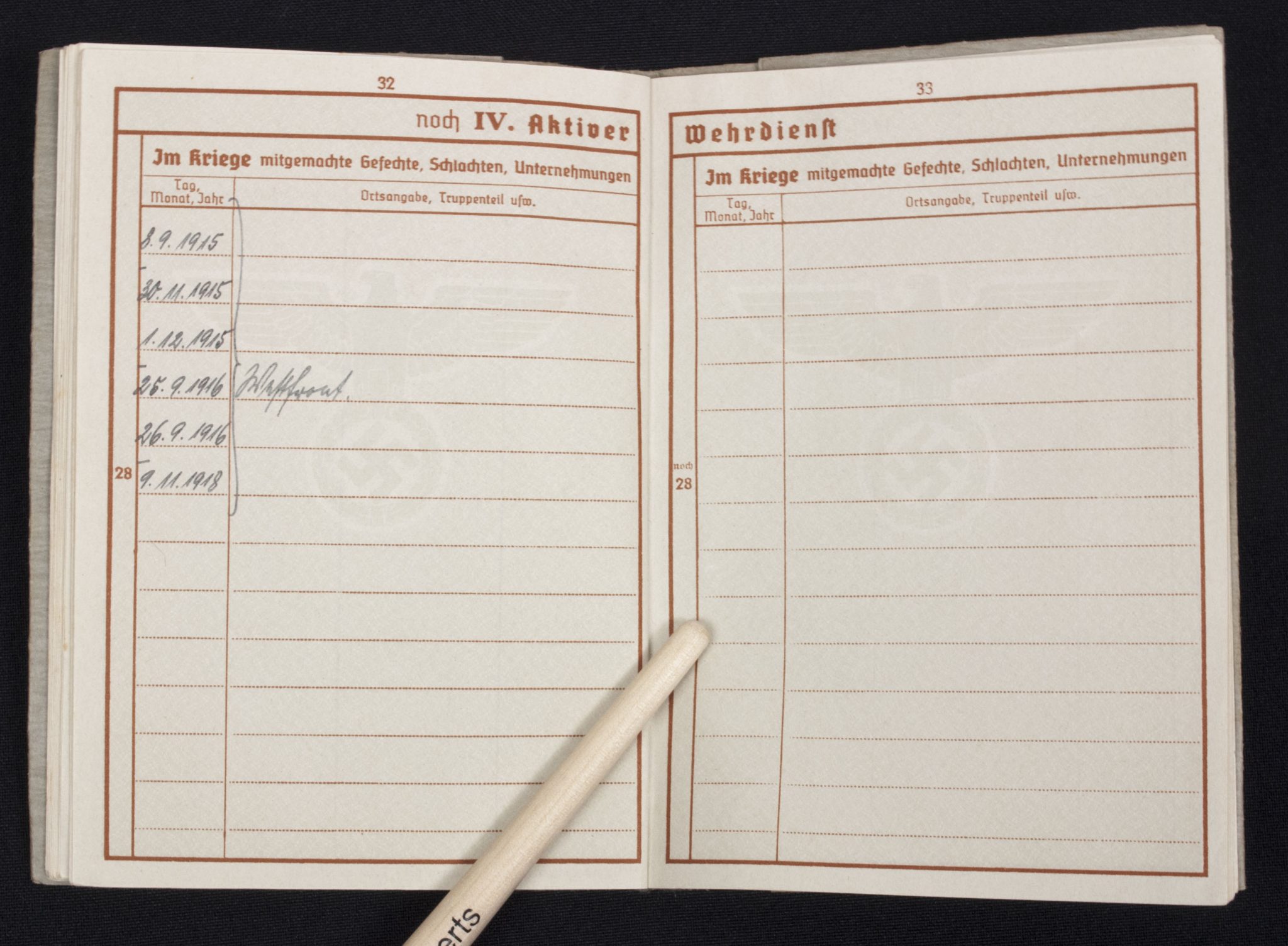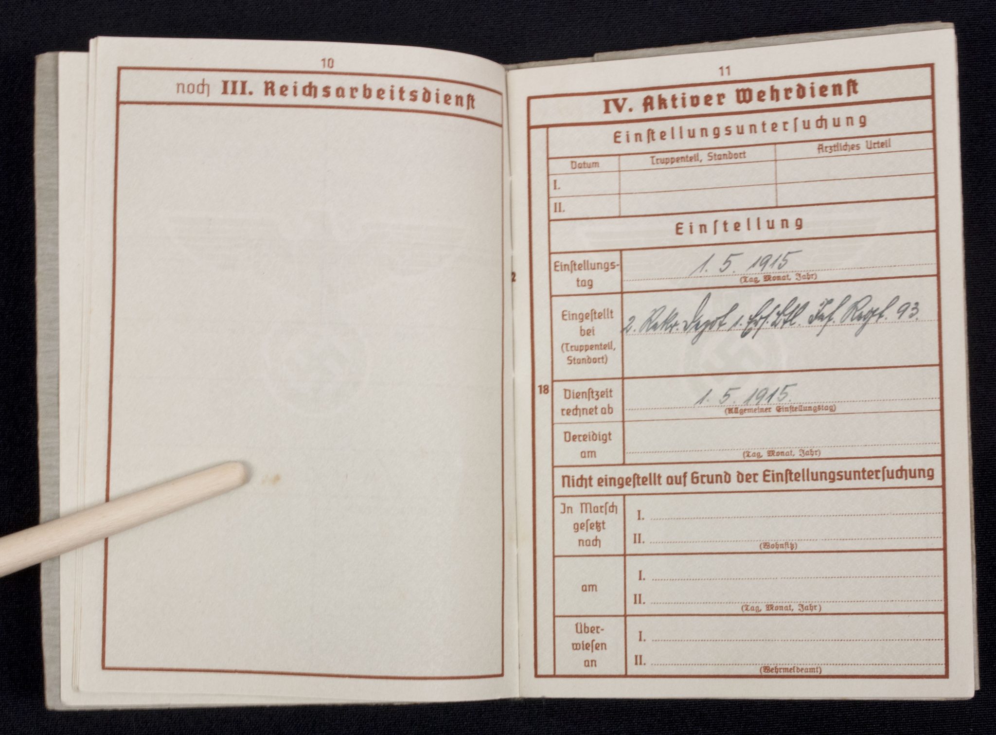 Wehrpass Wehrbezirkskommando Bernburg (Iron cross + Frontkämpfer cross entry).