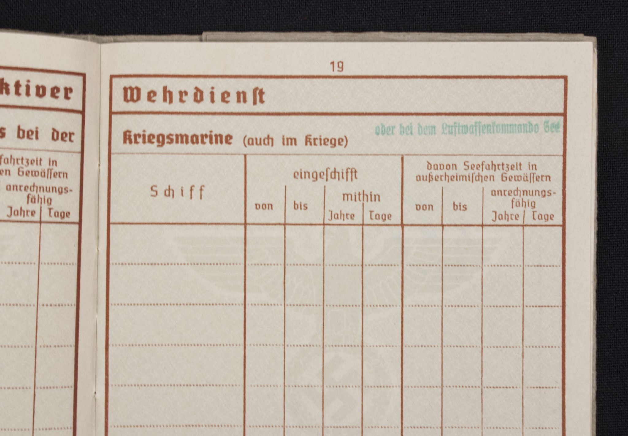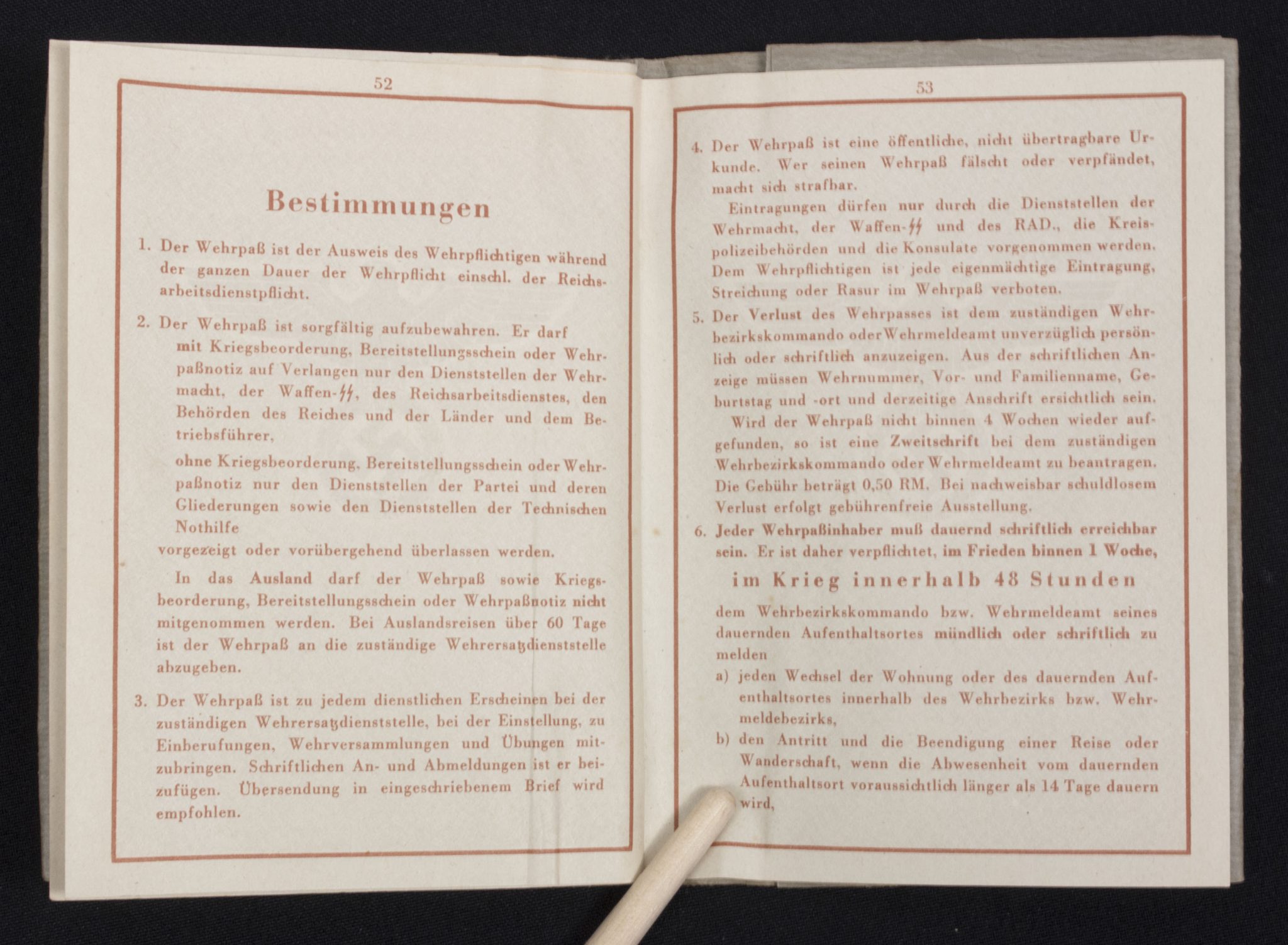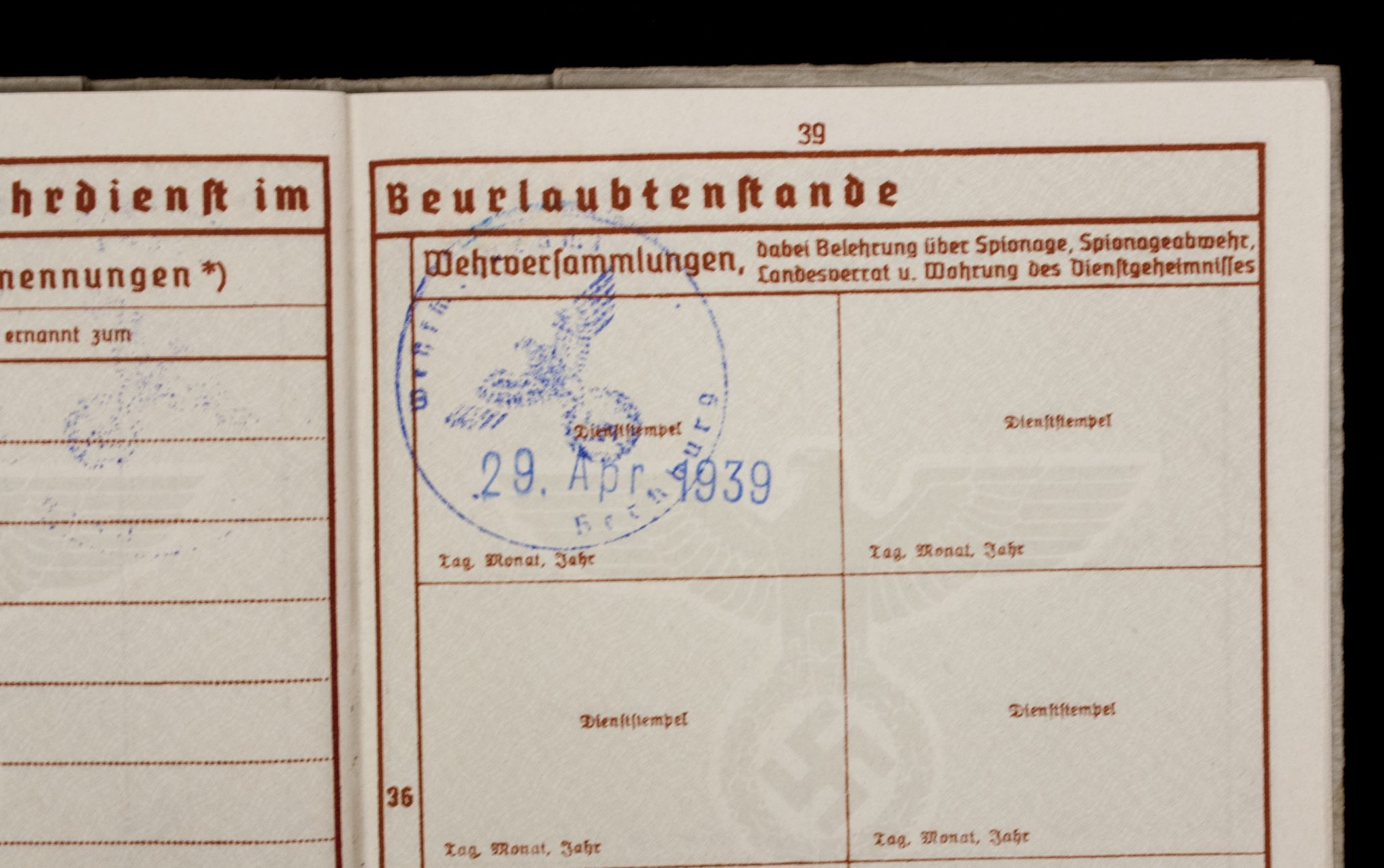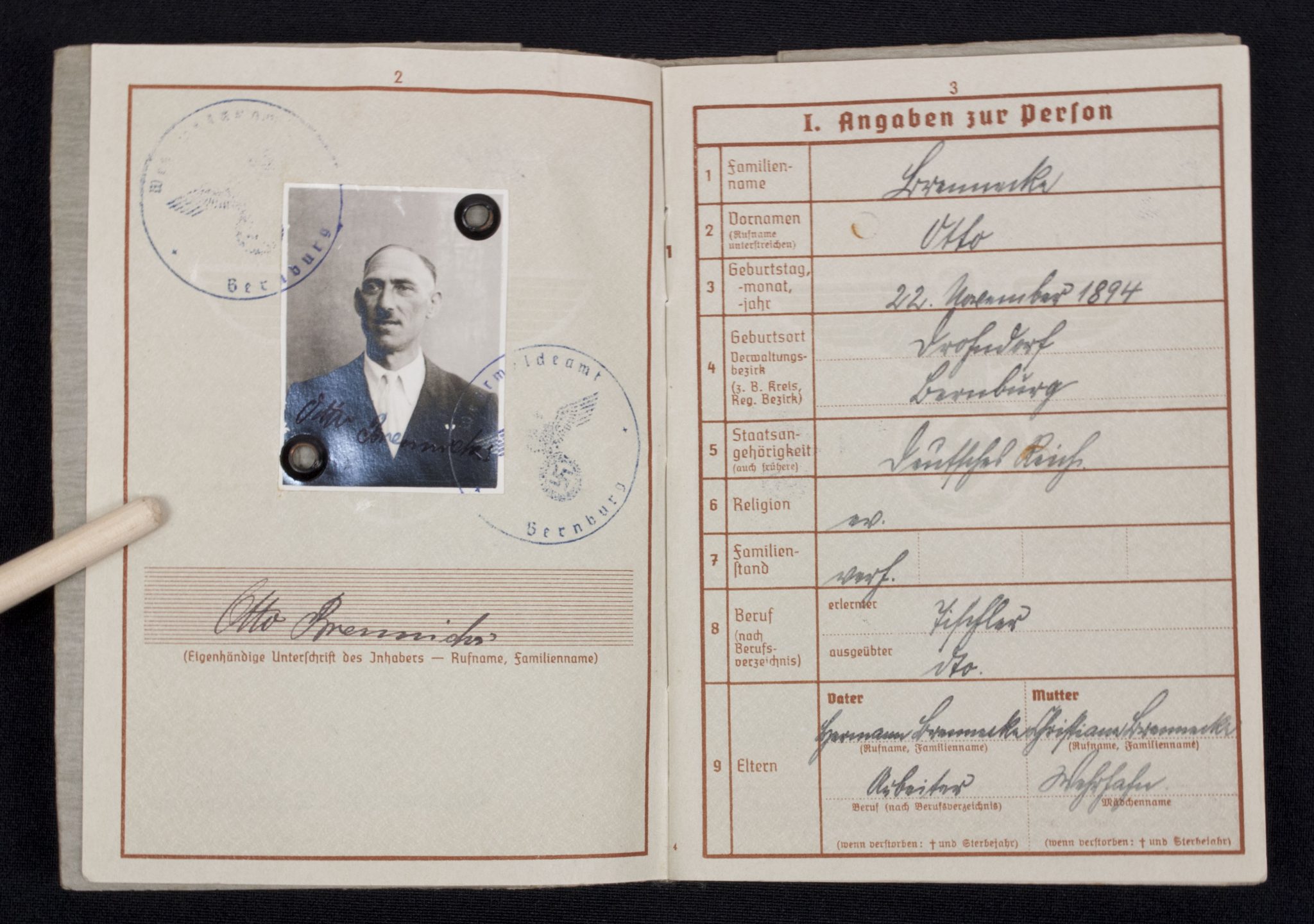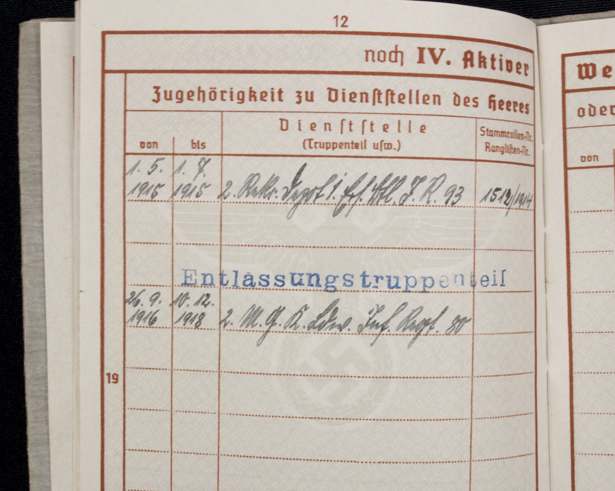 Wehrpass Wehrbezirkskommando Bernburg (Iron cross + Frontkämpfer cross entry).