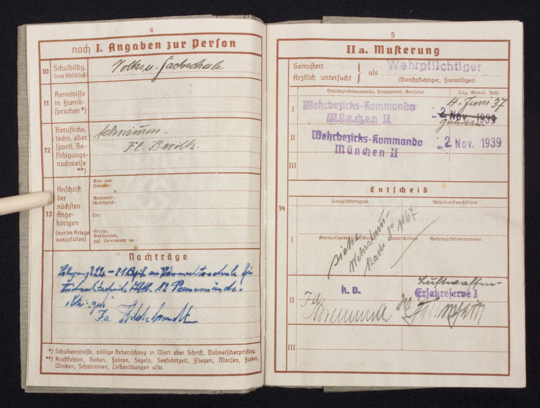 Wehrpass Wehrbezirkskommando München