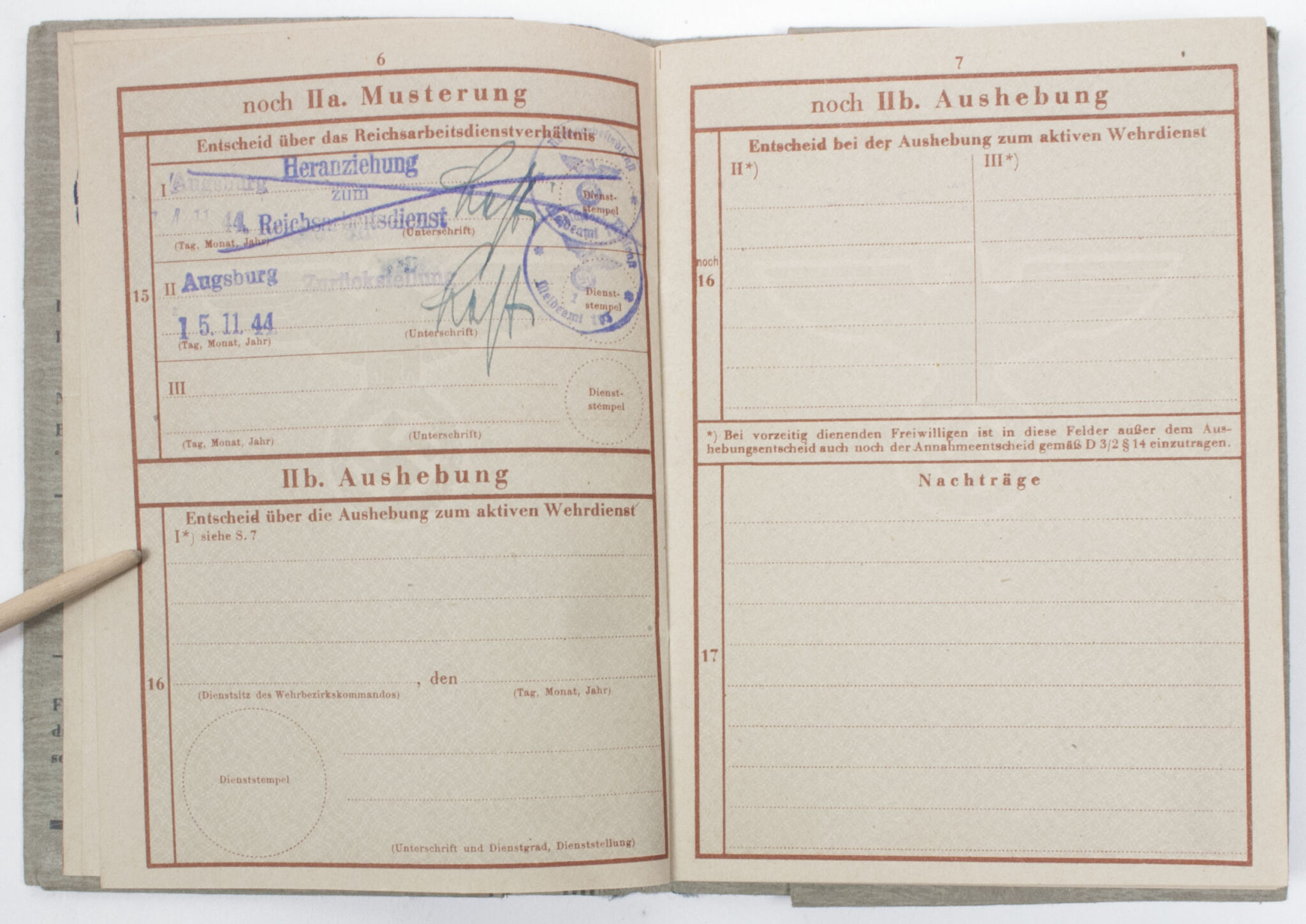Wehrpass Wehrbezirkskommando Augsburg (1944).