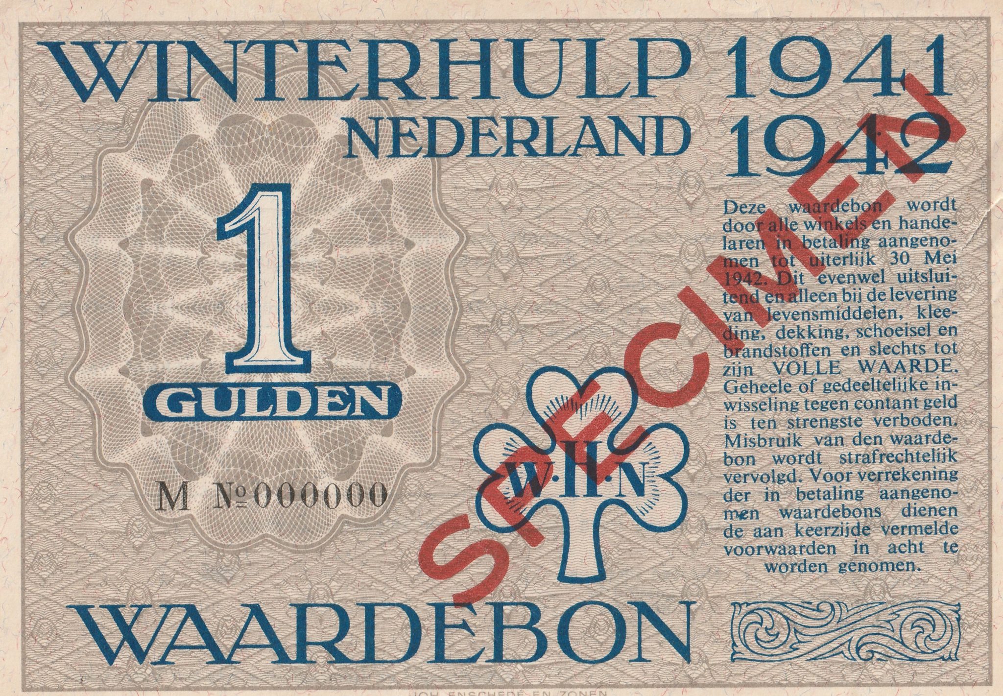 Winterhulp Nederland 1941-1942 (WHN) 1 Gulden Waardebon (Specimen)