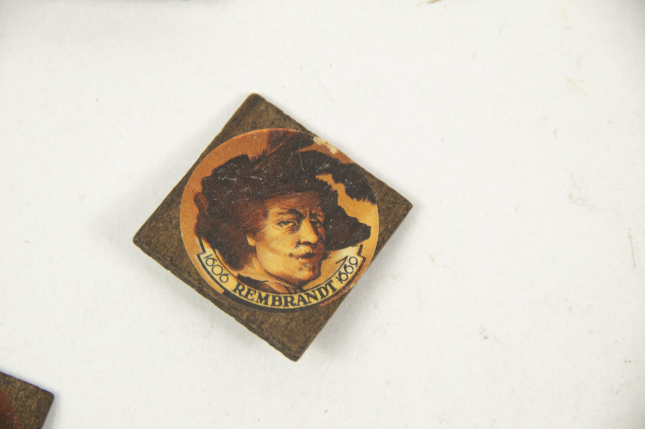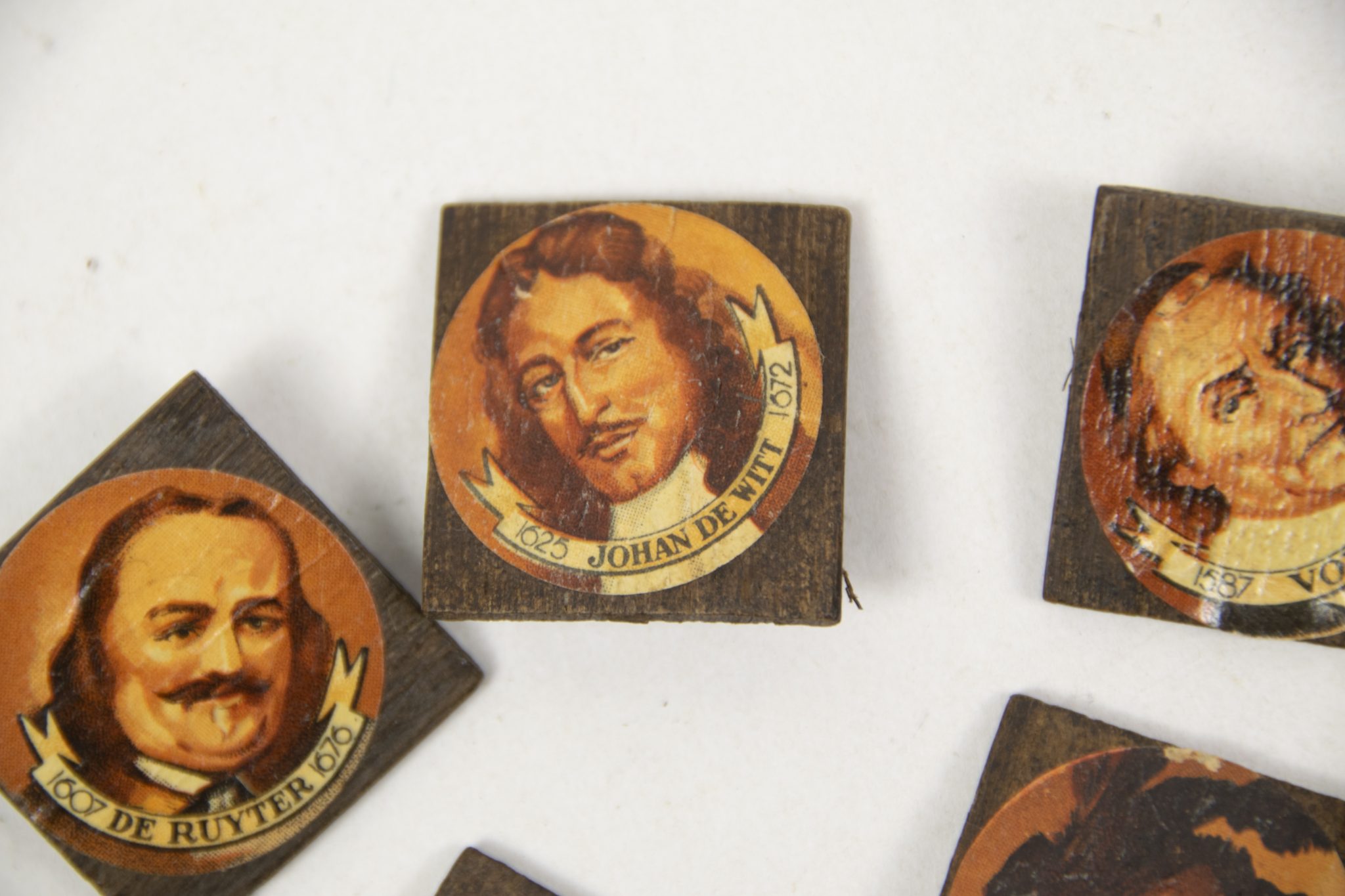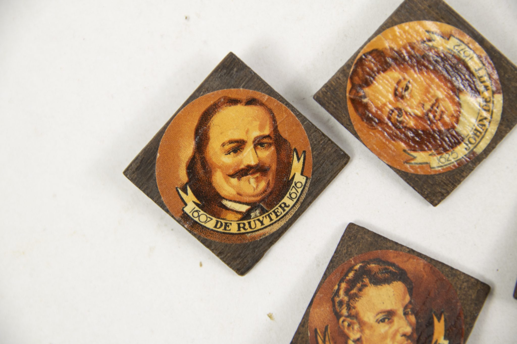 The 5 badges of this series were sold on 27 + 28 februari 1942. They show “famous” dutch historical persons: Joost van den Vondel, Willem de Zwijger, Michiel de Ruijter, Johan de Witt en Rembrandt van Rijn.