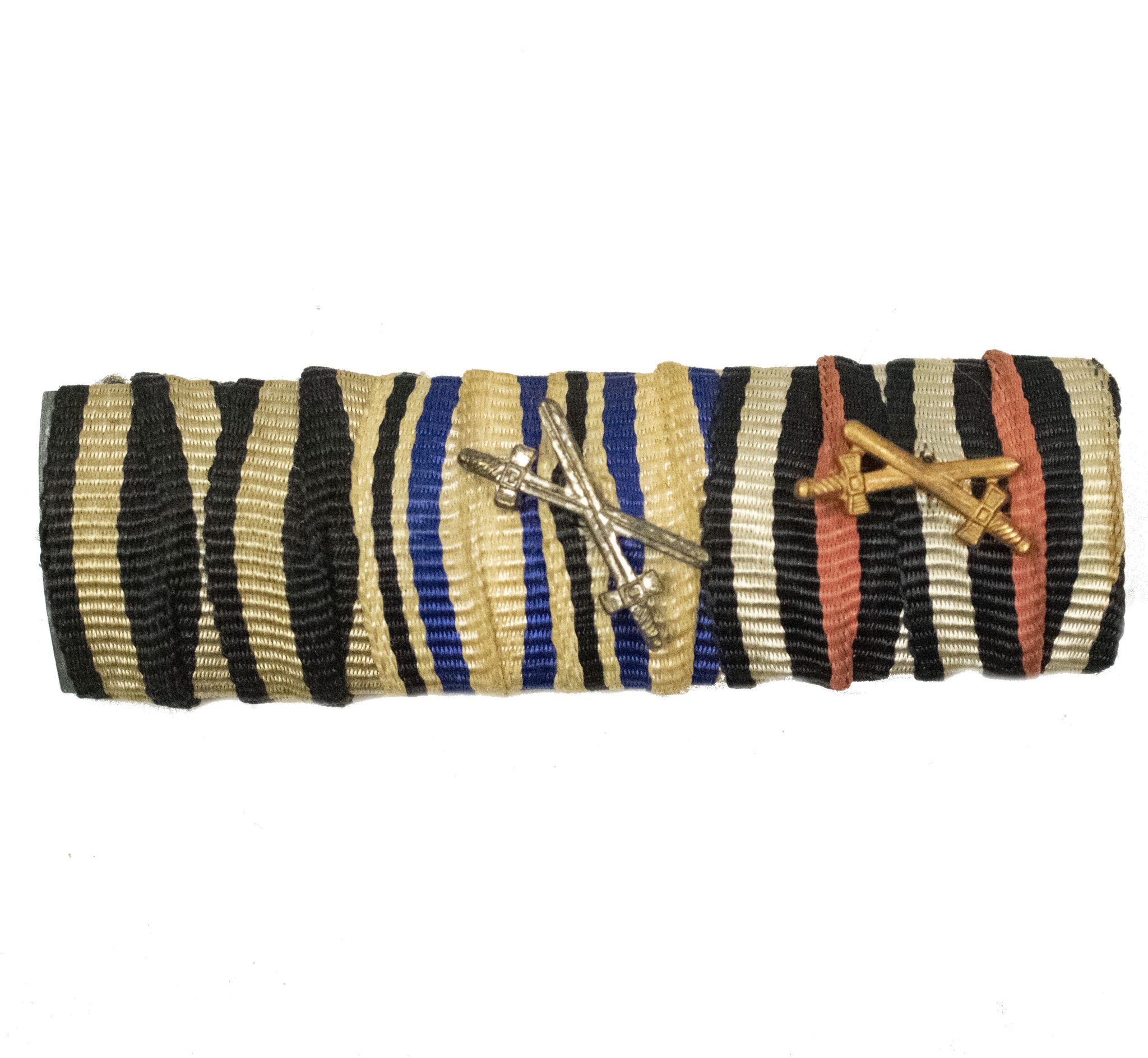 WWI Bavarian Ribbonbar EK2 + Militärverdienstkreuz with swords + Frontkämpfer Ehrenkreuz.