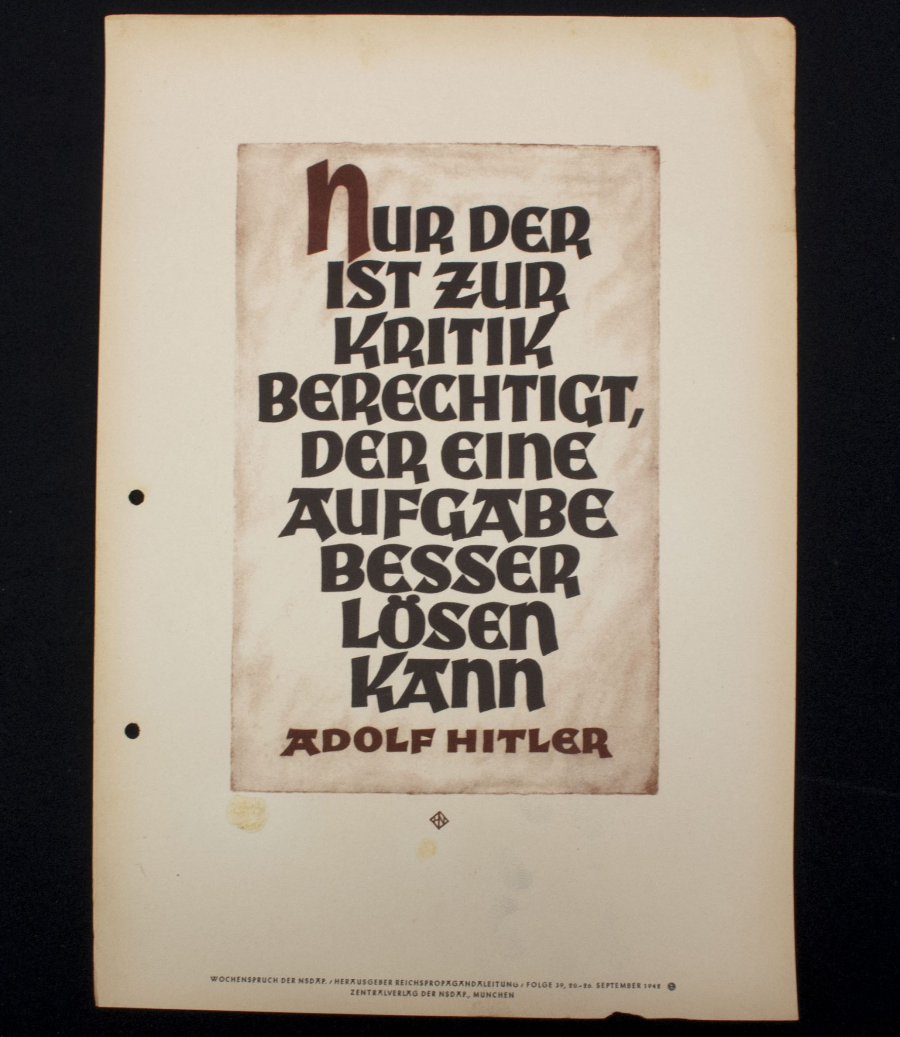 WWII German Wochenspruch (propaganda miniposter) with a saying of Adolf Hitler (1942)