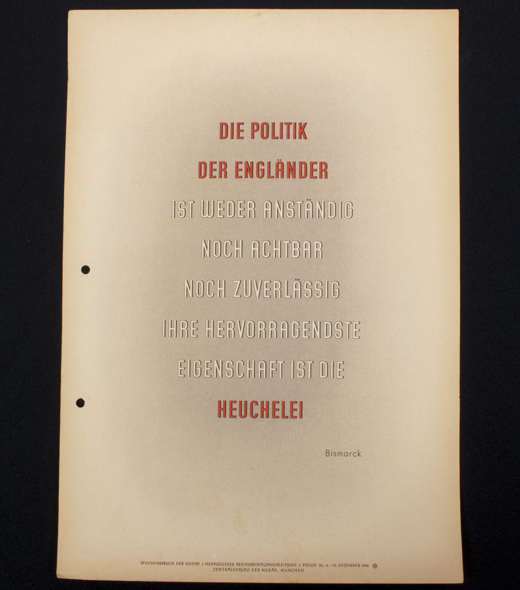 WWII German Wochenspruch (propaganda miniposter) with a saying of Bismarck.