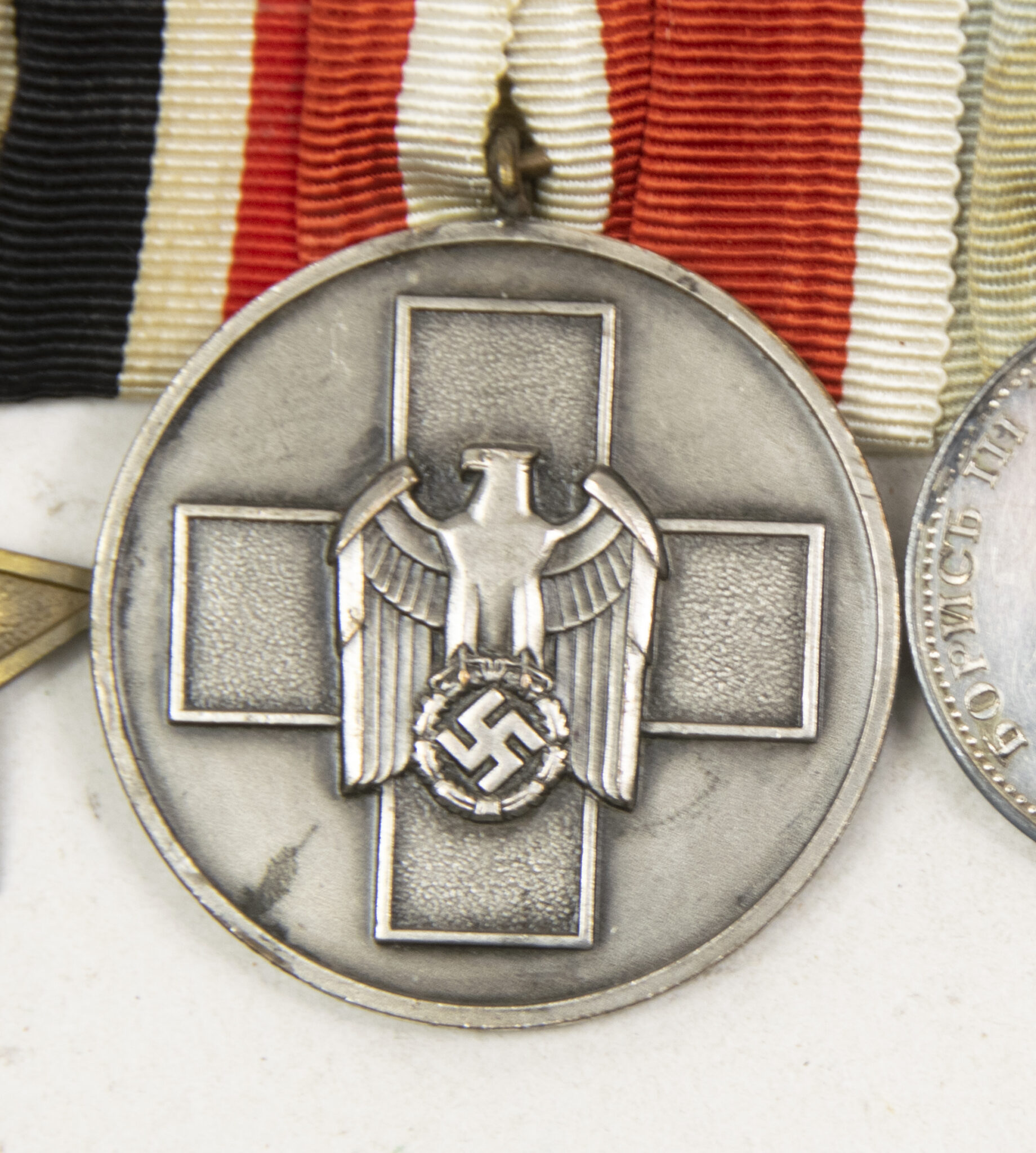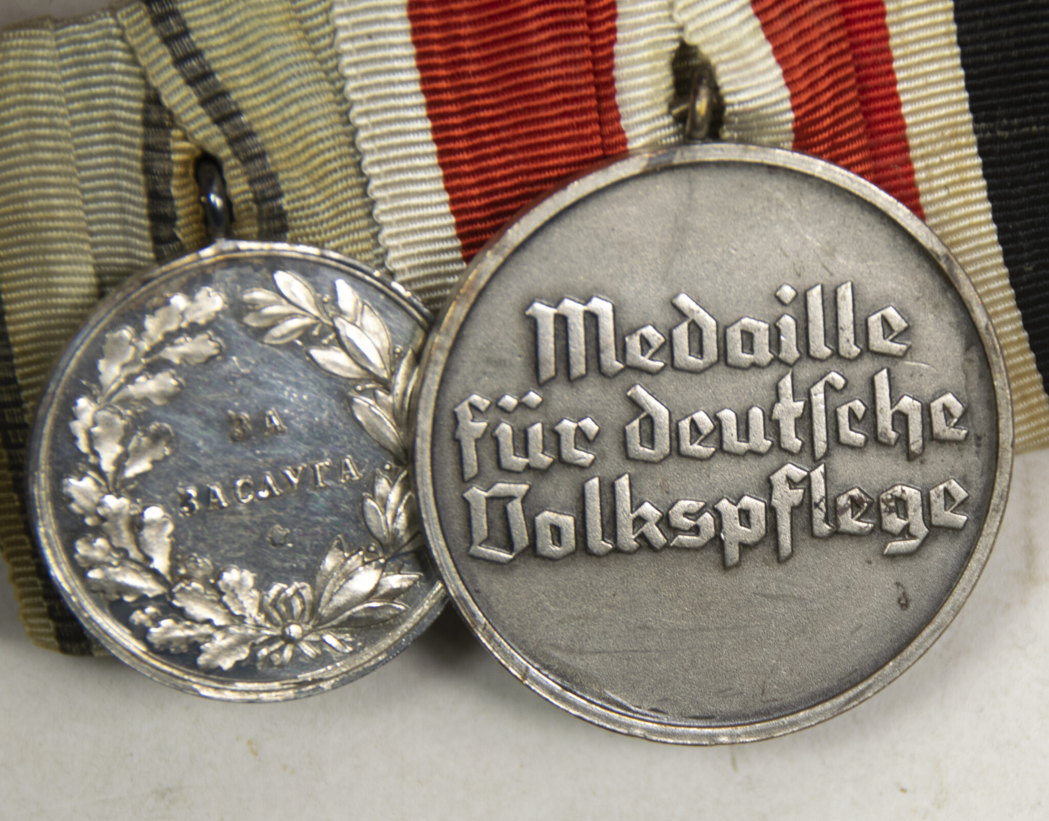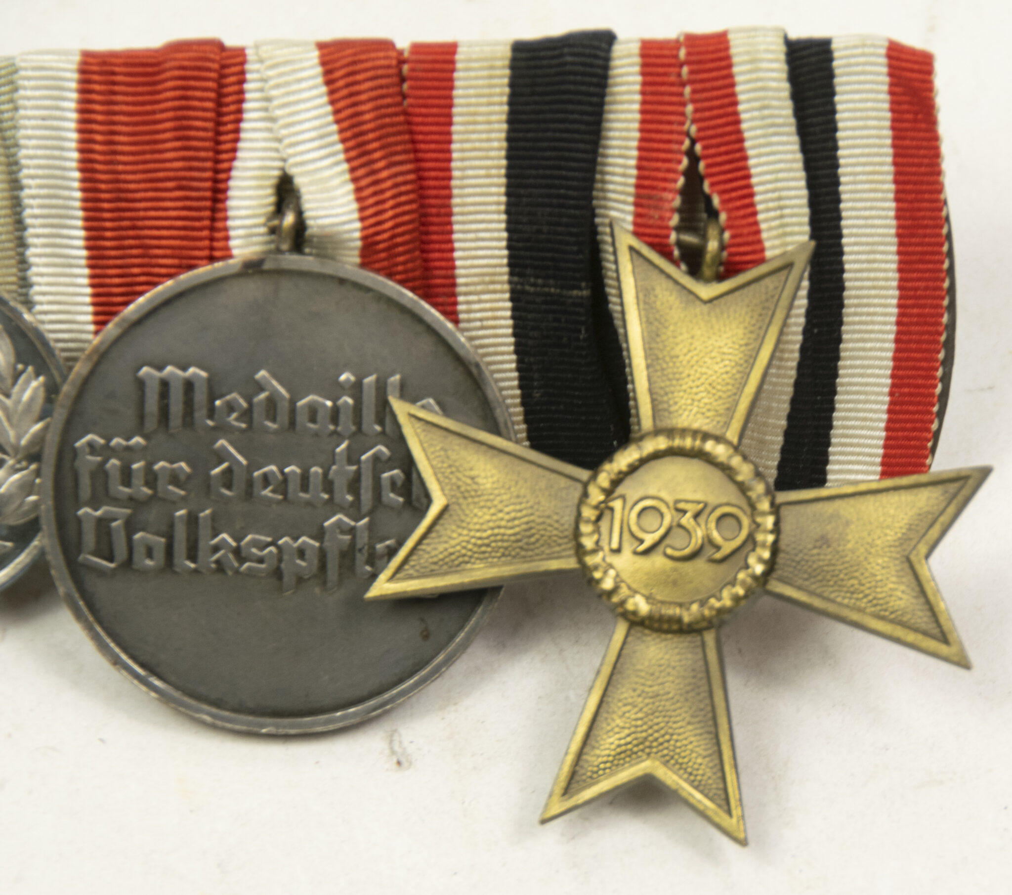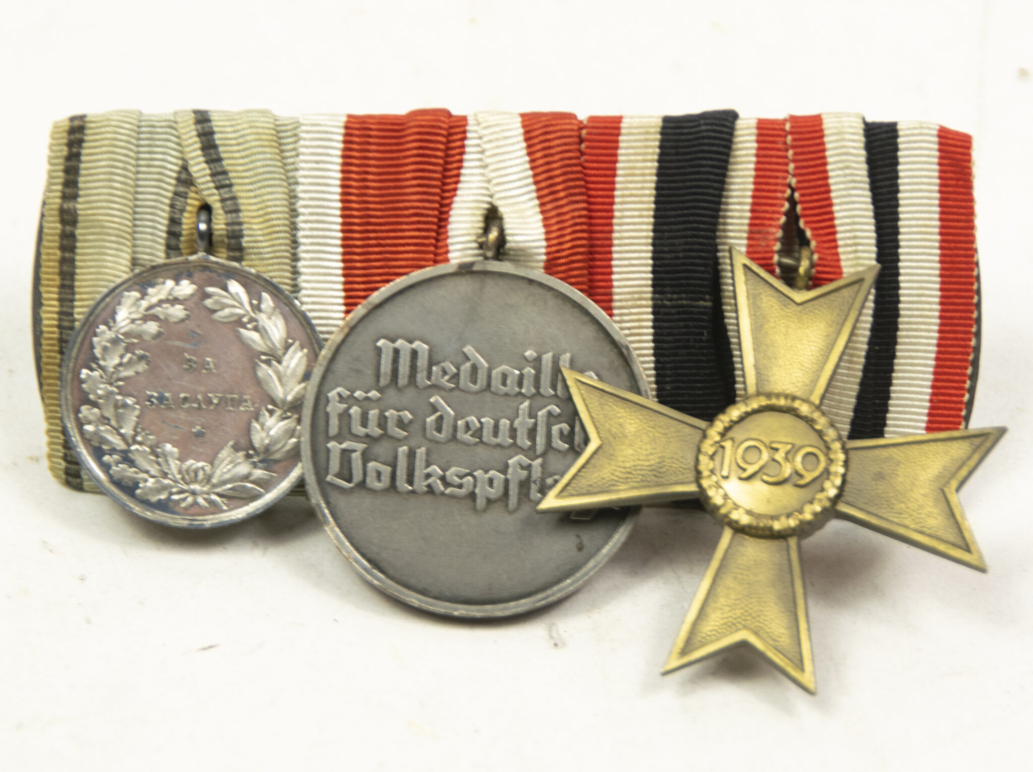 This is a WWII Medalbar with Kriegsverdienstkreuz ohne Schwerter/War Merit Cross withouth swords + Volkspflege medal + Bulgarian Boris III Tsar medal for merits.