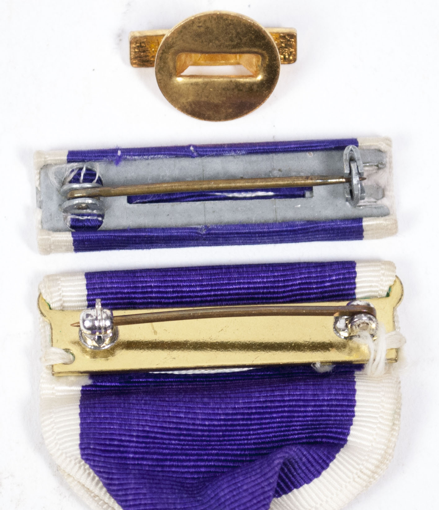 The back of the clasp on the ribbon typically WWII production with th to sewing holes.